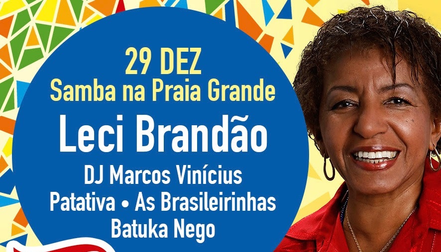 No dia 29 de dezembro tem muito samba na Praça Nauro Machado. Uma das grandes intérpretes de música popular brasileira, Leci Brandão, comanda a programação com sucessos como ‘Papai vadiou’, ‘As coisas que mamãe me ensinou’, ‘Café com pão’, ‘Só quero te namorar’, ‘Fogueira de uma paixão’ de Arlindo Cruz, ‘Meu Oceano’ do grupo Revelação, entre outras.