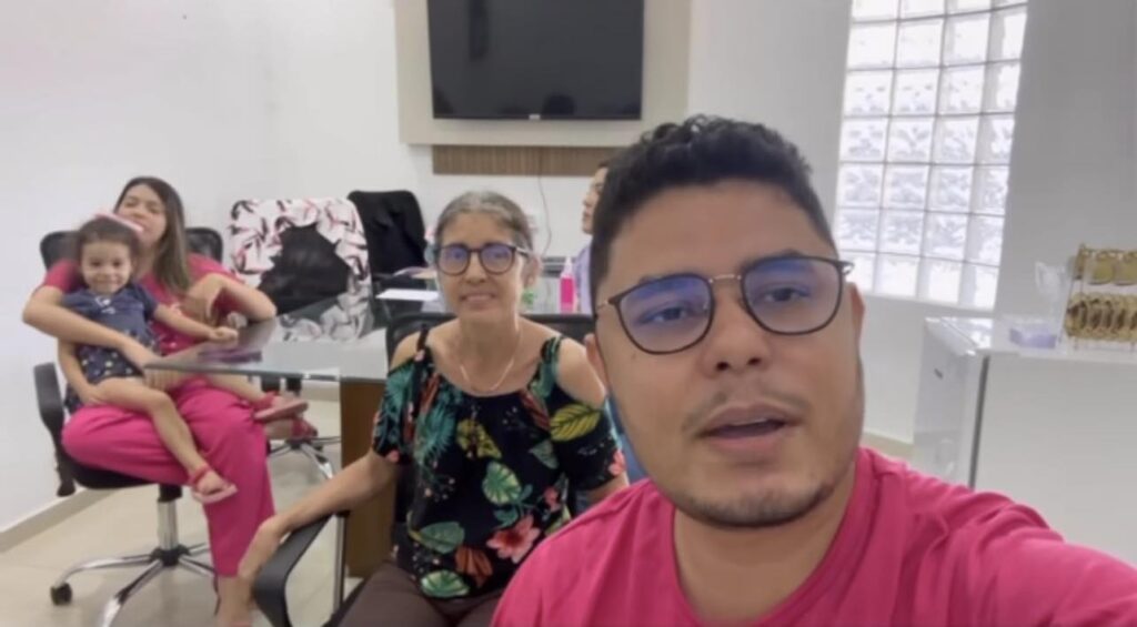 No vídeo (veja no fim do texto), o vereador aparece ao lado da mãe, da esposa e da filha.