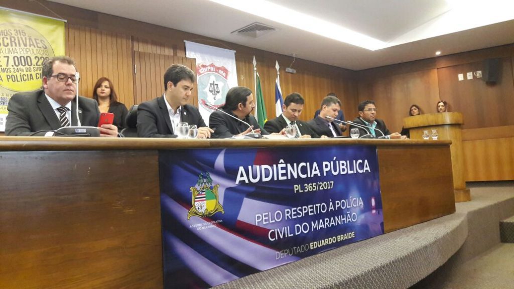 O vereador Sá Marques, que também é policial civil, participou, na tarde da última sexta-feira (23), de uma audiência pública que discutiu Projeto de Lei do Executivo Estadual, que trata sobre a organização administrativa da Polícia Civil. O evento contou com a presença de várias autoridades políticas, entre elas, os deputados estaduais Júnior Verde, presidente da Comissão de Segurança na AL-MA , do autor da audiência, Eduardo Braide, do deputado Wellington do Curso, além de representantes de entidades ligadas a área da segurança.
