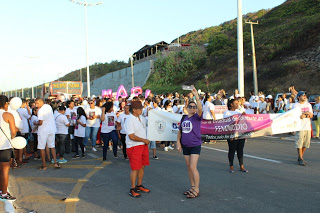 Ainda sobre a caminhada, foram entregues materiais educativos, onde as pessoas se revezavam utilizando o microfone, e com o auxílio de um carro de som, chamavam a atenção de todos na Avenida Litorânea para uma causa tão importante, que é o combate a violência contra a mulher e os casos de feminicídio.