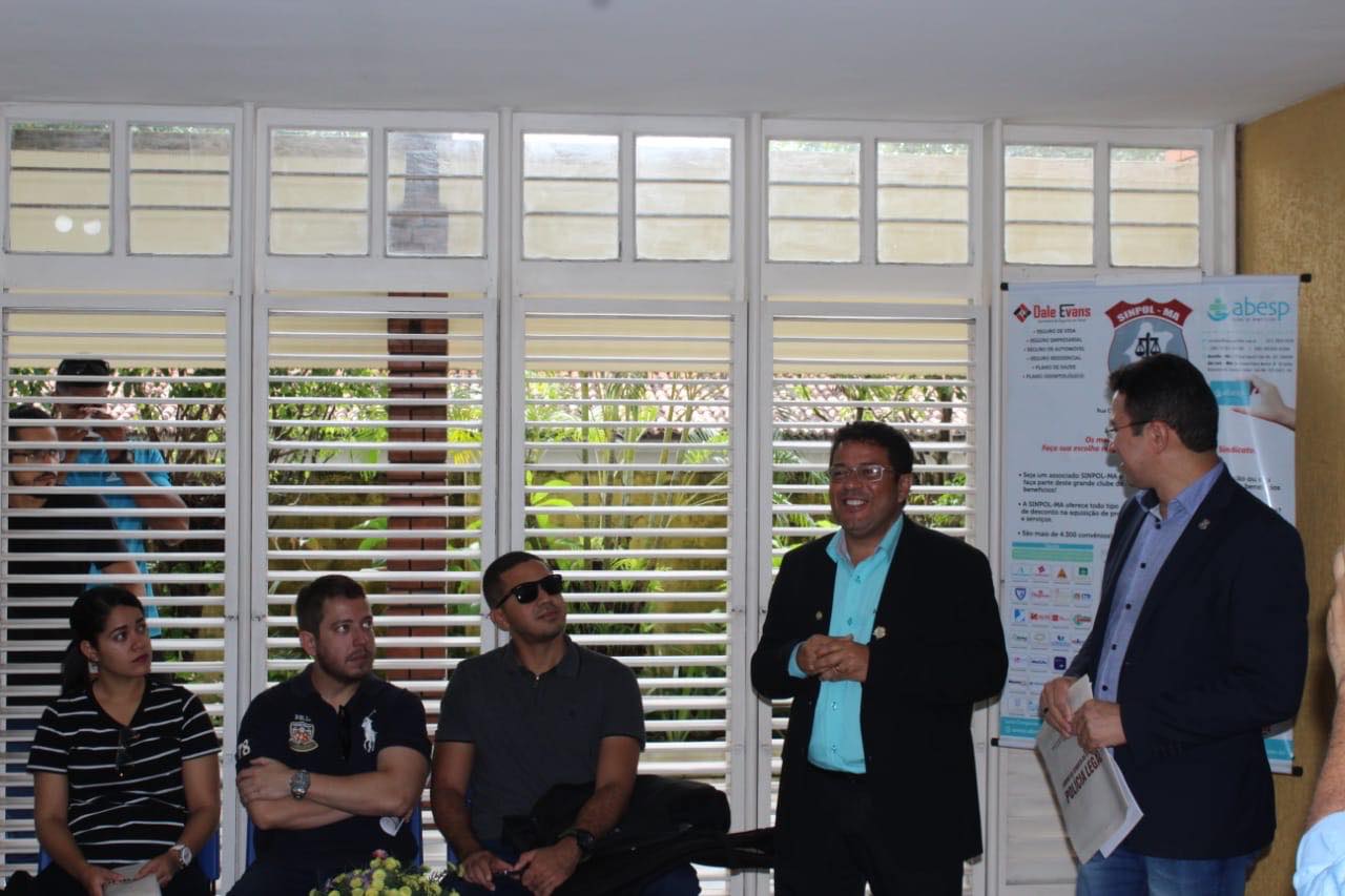 O Professor, policial civil e atualmente Vereador, Sá Marques, esteve prestigiando um café da manhã de boas-vindas, oferecido pelo Sindicado dos Policiais do Maranhão (Sinpol), na manhã desta quarta-feira (27), aos novos policiais civis. Em discurso, o presidente do Sindicato Elton Neves desejou as boas-vindas aos novos integrantes da PCMA, falou da missão de ser policial civil e apresentou uma cartilha contendo informações sobre os direitos e deveres dos policiais civis, para que atuem de acordo com a legislação.