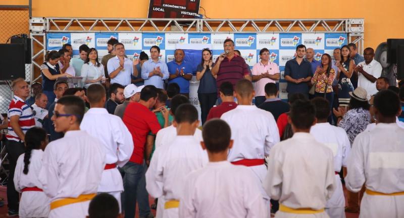 Ainda no sábado, o governador inaugurou o novo Ginásio Poliesportivo Manoel Trajano, ampliando os projetos por mais acesso ao lazer e esporte para todas as idades, que integra o conjunto de equipamentos do Complexo Esportivo Canhoteiro – o Castelinho, no Outeiro da Cruz. A solenidade de entrega do estádio, neste sábado (9), às 10h. A família do homenageado representada por seus filhos: Felipe, Tiago e Bárbara Trajano, também fez questão de comparecer ao evento.