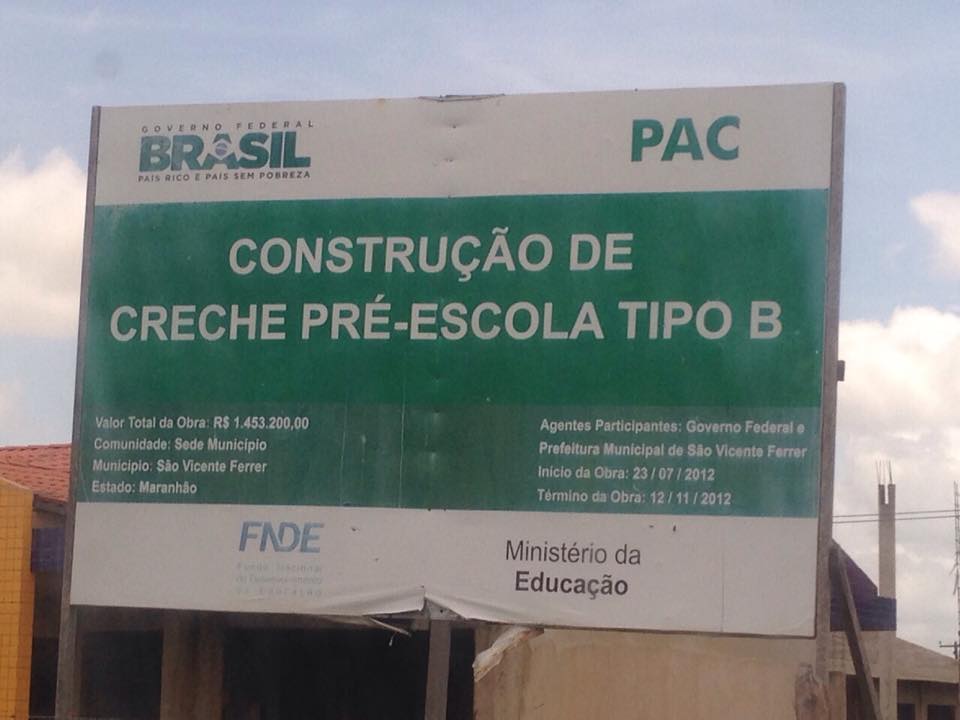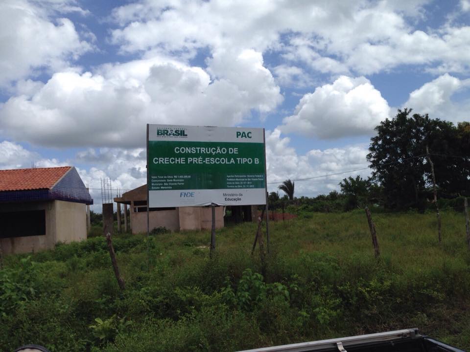 No quesito obras então, o município não sabe o que é há muito tempo. Prova disso é o descaso da Prefeitura com a construção da creche Pré-Escola Tipo B, que teve a placa com informações afixada ainda em 2012, mas que, até hoje, continua do mesmo jeito: Um terreno totalmente vazio. A construção da creche está orçada em exatamente R$ 1.453.200,00, com recursos federais oriundos do Ministério da Educação, e de acordo com a placa informativa, a obra também era pra ter terminado ainda em 2012, mas inacreditavelmente, depois de três anos, nada foi feito. E agora, prefeita Maria Raimunda? O que dizer sobre isso? A população do município merece uma resposta. A titular do blog tentou entrar em contato com a prefeita Maria Raimunda via celular, mas a mesma não atendeu as ligações.
