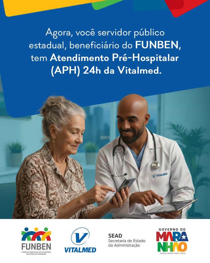 Os servidores públicos beneficiários do Fundo de Benefícios dos Servidores do Estado do Maranhão (Funben) e seus dependentes (ativos, aposentados, pensionistas, cônjuges, filhos e pais inválidos) passam a contar com um novo e importante serviço de saúde: o Atendimento Pré-Hospitalar (APH) da Vitalmed.