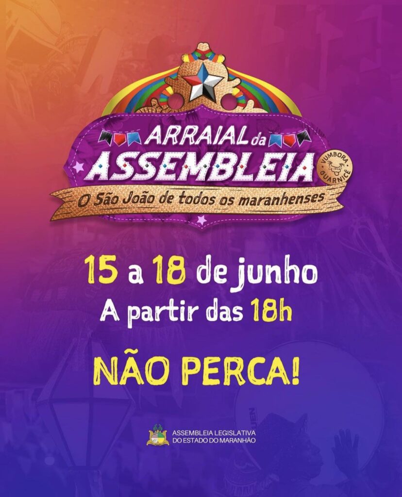 Com uma programação abrangente, diversificada, atrativa e contemplando todas as expressões da rica cultura popular do Maranhão, o Arraial da Assembleia começa na próxima quinta-feira (15), às 18h. A festança é uma inciativa do Poder Legislativo e se estenderá até domingo (18).