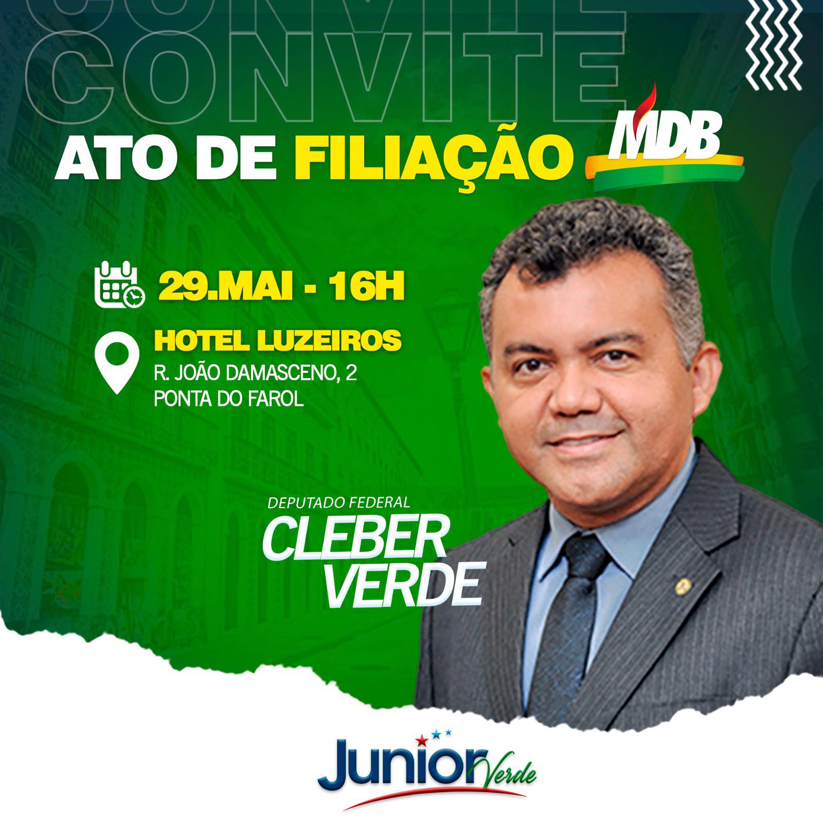 O deputado federal Cleber Verde confirmou sua filiação ao MDB no próximo dia 29. O ato de filiação ocorrerá em um hotel de São Luís. “Estou me filiando ao Movimento Democrático Brasileiro (MDB), um partido que possui uma longa trajetória de contribuição para a democracia e o desenvolvimento do nosso país“, disse o parlamentar.