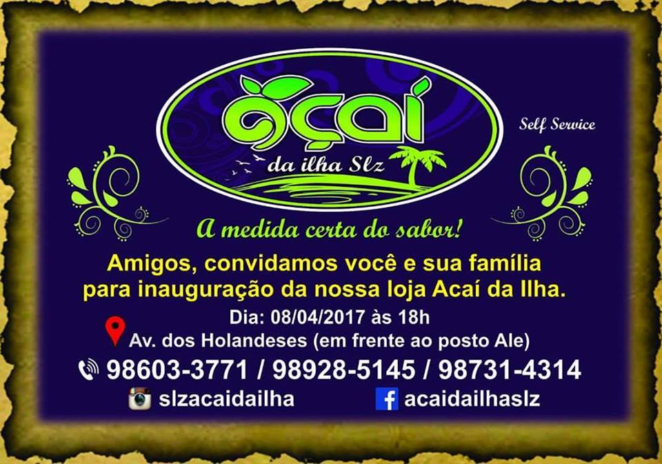 São Luís vai ganhar, a partir deste sábado (08), o “Açaí da Ilha”, mais novo ponto de encontro dos fãs do Açaí, essa fruta roxa, que traz inúmeros benefícios a saúde. A loja vai funcionar na Avenida dos Holandeses, número 36 A, entre o retorno do Olho D’água e do Caolho, sentido Araçagy/Calhau. A inauguração está prevista para as 18h.