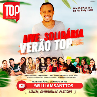 Tudo pronto para a Live solidária “Verão Top”, promovida pelo apresentador e colunista Willian Santos. O evento acontecerá nesta quinta-feira, dia 30 de Julho, a partir das 16h, e será transmitida pelo canal de Willian no YouTube. A live com cunho solidário será para ajudar produtores, garçons, seguranças, cozinheiras e pessoas que trabalham em eventos.