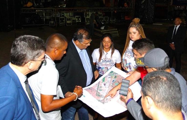 Na quinta-feira (20), à noite, o governador Flávio Dino vistoriou os últimos detalhes da montagem do carnaval que acontece em São Luís, desta sexta-feira (21) até terça-feira (25).