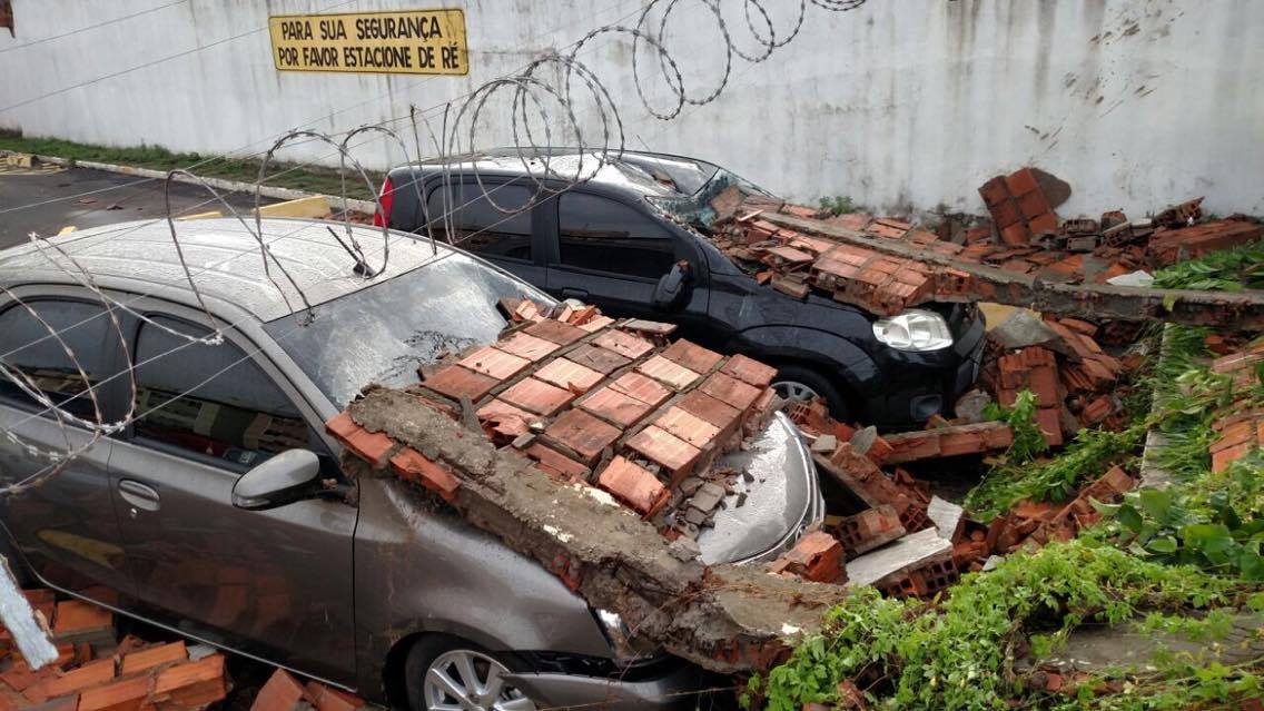 Com isso, muros de vários prédios da cidade desabaram e carros também foram atingidos.