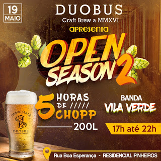 O único Open Beer de Fábrica de São Luís está de volta! A Cervejaria Duobus traz mais uma vez para São Luís o seu Open Season com 200L de chopp no sistema self service. Com atração musical da Banda Vila Verde Reggae, quatro estilos de chopp e gastronomia artesanal.