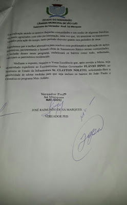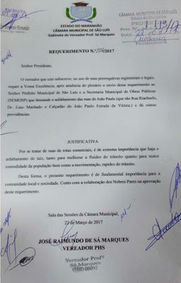 O incansável vereador Sá Marques, que desde o começo do ano vem trabalhando diariamente e solicitando diversos benefícios para os ludovicenses, conseguiu mais um importante benefício, desta vez, para a comunidade do bairro do João Paulo.