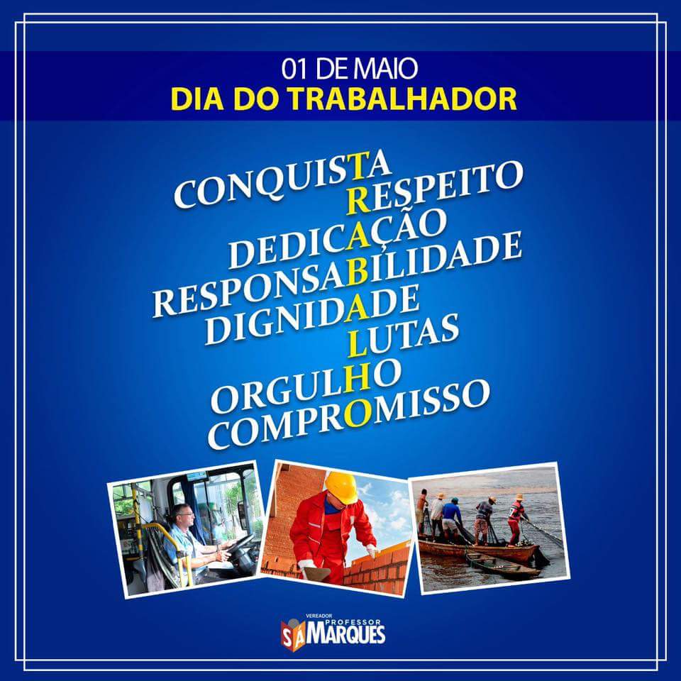 O Vereador Sá Marques, professor de História, policial civil e advogado, conhecedor profundo de várias áreas do Direito, parabenizou os trabalhadores brasileiros, maranhenses, e em especial, os ludovicenses neste dia 1° de maio. Antes o professor explicou a origem do Dia do Trabalhador.