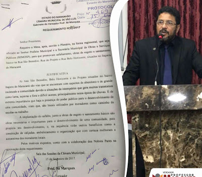 Ainda na área da infraestrutura, Sá Marques conseguiu a aprovação, por unanimidade, do requerimento solicitando obras de asfaltamento, de esgoto e saneamento básico na rua São Benedito, rua do Projeto e rua Belo Horizonte, situadas em Itapera do Maracanã, na Zona Rural de São Luís.