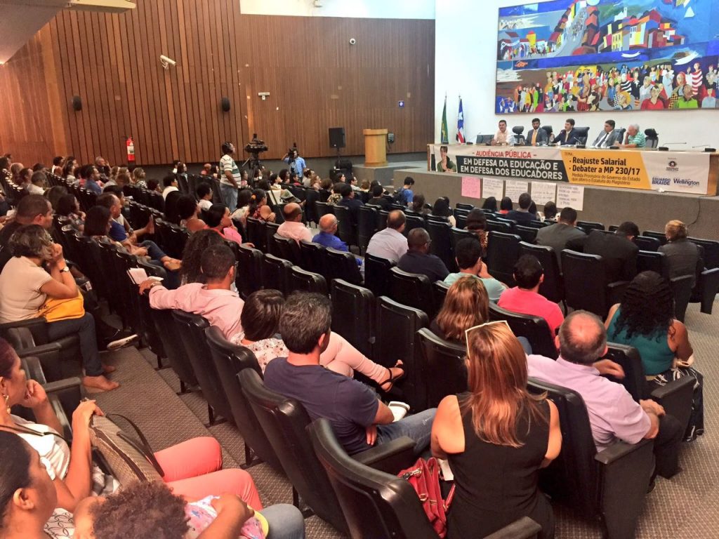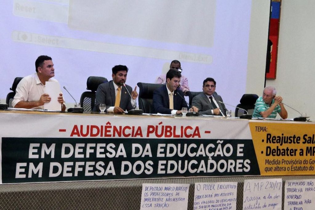 Em defesa dos professores da Rede Pública do Estado do Maranhão, o deputado estadual Wellington do Curso (PP) participou, na tarde desta terça-feira (22), de audiência pública que abordou a Medida Provisória N.230/17, de autoria do Executivo. A audiência é resultado de várias solicitações de professores, que estão revoltados com a Medida Provisória que, dentre outras coisas, congela vencimentos dos professores ao violar o art.32 do atual Estatuto do Magistério, que impõe obrigatoriamente o reajuste dos vencimentos.