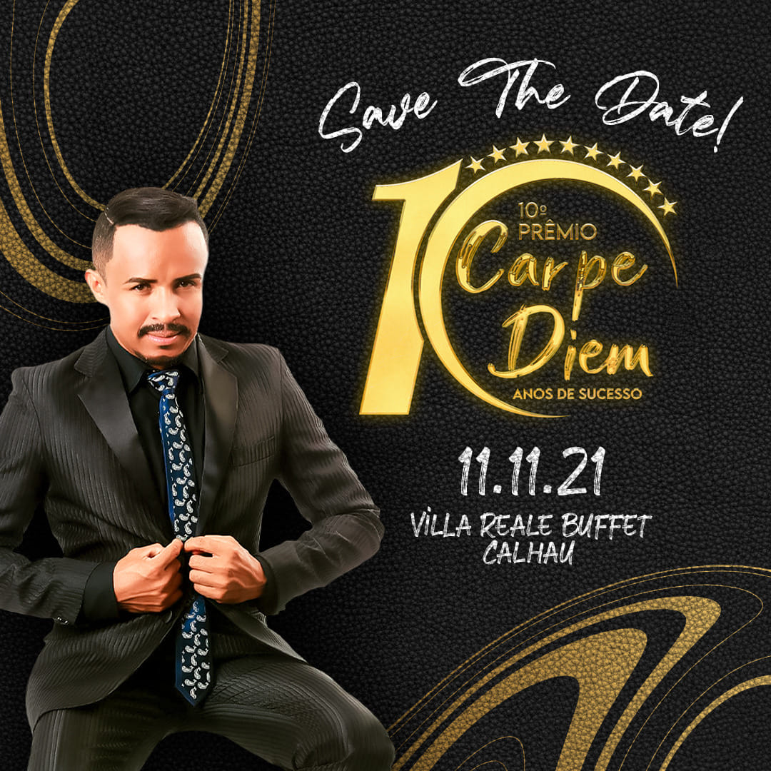 O apresentador do Programa Top da TV Band Maranhão e Colunista Social do Jornal O Debate, William Santos, promove a 10º edição do Prêmio Carpe Diem, sem dúvida um dos mais badalados de São Luís do Maranhão. O evento, somente para convidados, acontece nos salões luxuosos da Villa Reale Buffet Calhau, no dia 11 de novembro de 2021.